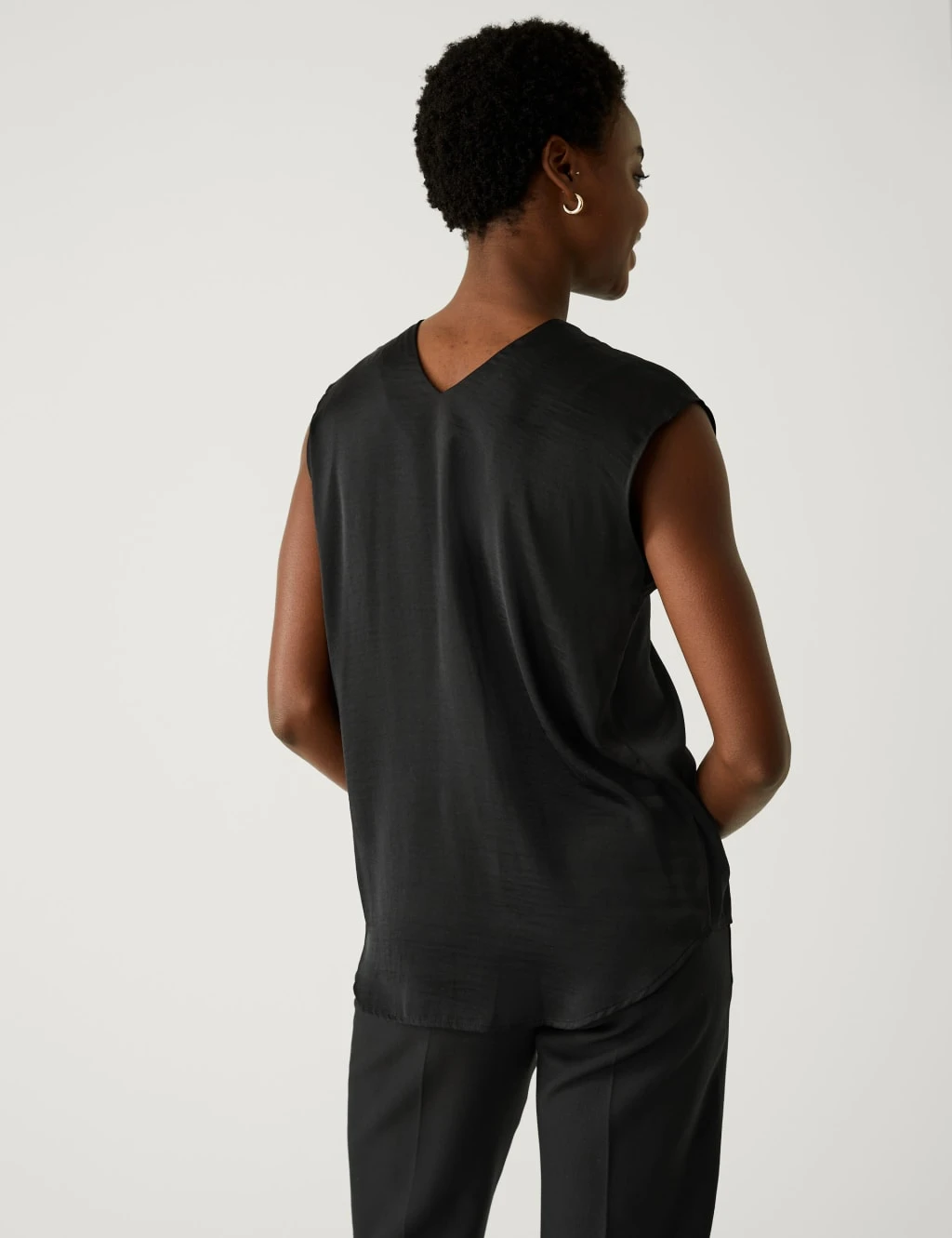This popover blouse is crafted from smooth satin for a luxurious feel. It has a regular fit, with a sleeveless shape for breathability. A v-neck accentuates the elegant effect.
