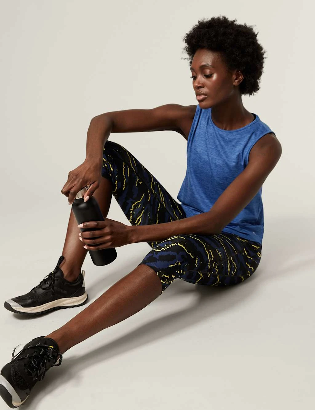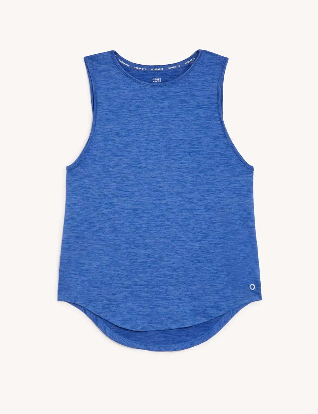 Throw on this moisture-wicking Goodmove collection top to see you through your sweatiest workouts. This breezy sleeveless style has a regular fit and scoop neckline. It’s made from breathable, quick-drying and moisture-wicking fabric to keep you cool when you’re training hard. Made with recycled polyester.