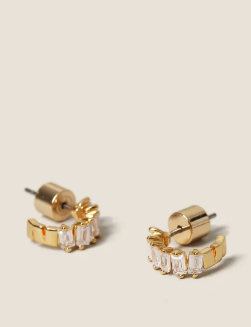 14ct Gold Plated Cubic Zirconia Hoop Earrings