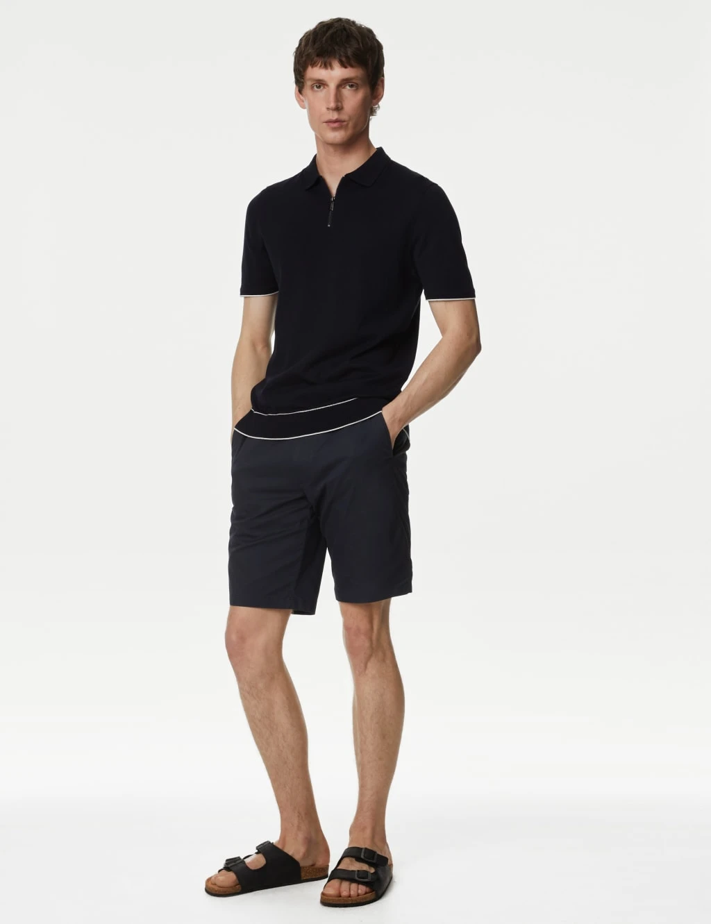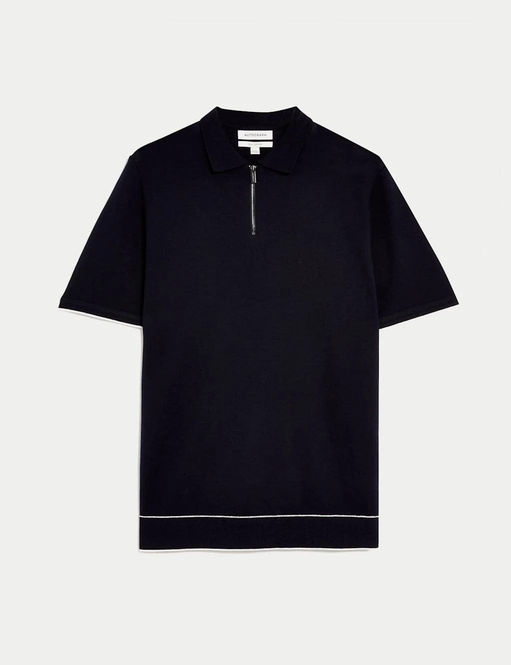 Add a touch of luxury to your casual wardrobe with this silk-cotton knitted polo shirt from our Autograph collection. Tipping and racking at the hem and cuffs add stylish detail. A modern branded zip at the neck gives a premium finish.