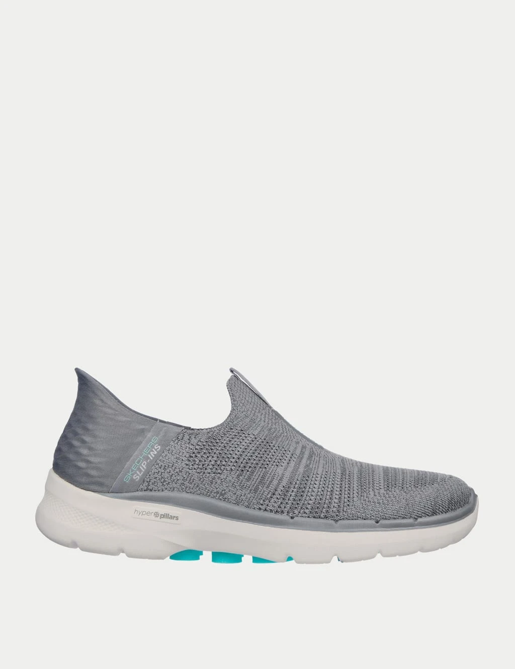 Take active days in your stride with the Go Walk 6 Fabulous View trainers by Skechers. These laceless shoes provide slip-on-and-go ease thanks to their stretchy knitted uppers and super-lightweight ULTRA GO® technology. The brand’s Air-Cooled Memory Foam® and a layer of Ortholite® foam gently cradle the feet, delivering contoured cushioning underfoot. High-rebound Hyper Pillars® bring extra support, while durable dual-density traction outsoles ensure grip and stability underfoot.
