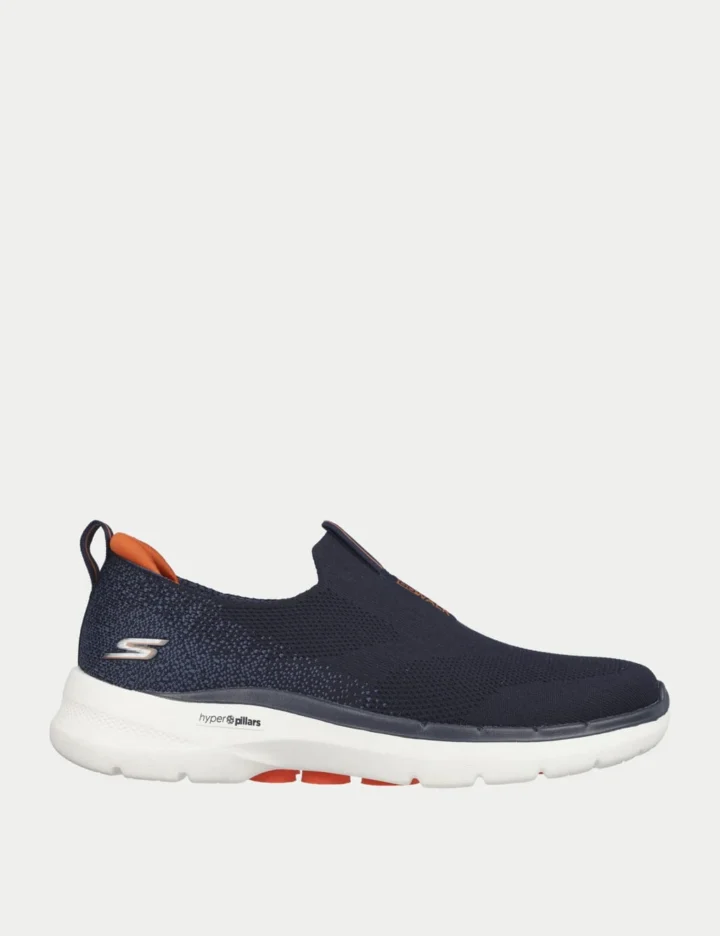 These sporty GOwalk 6 trainers from Skechers have a slip-on design for effortless wear. The stretchy textile upper features a contemporary gradient design and branded detailing on the front and side. An Air-Cooled Goga Mat™ insole offers high-rebound cushioning and breathability, while the ULTRA GO® cushioning is responsive and lightweight for all-day comfort. The dual-density outsole ensures great stability, and Hyper Pillars® give added support.