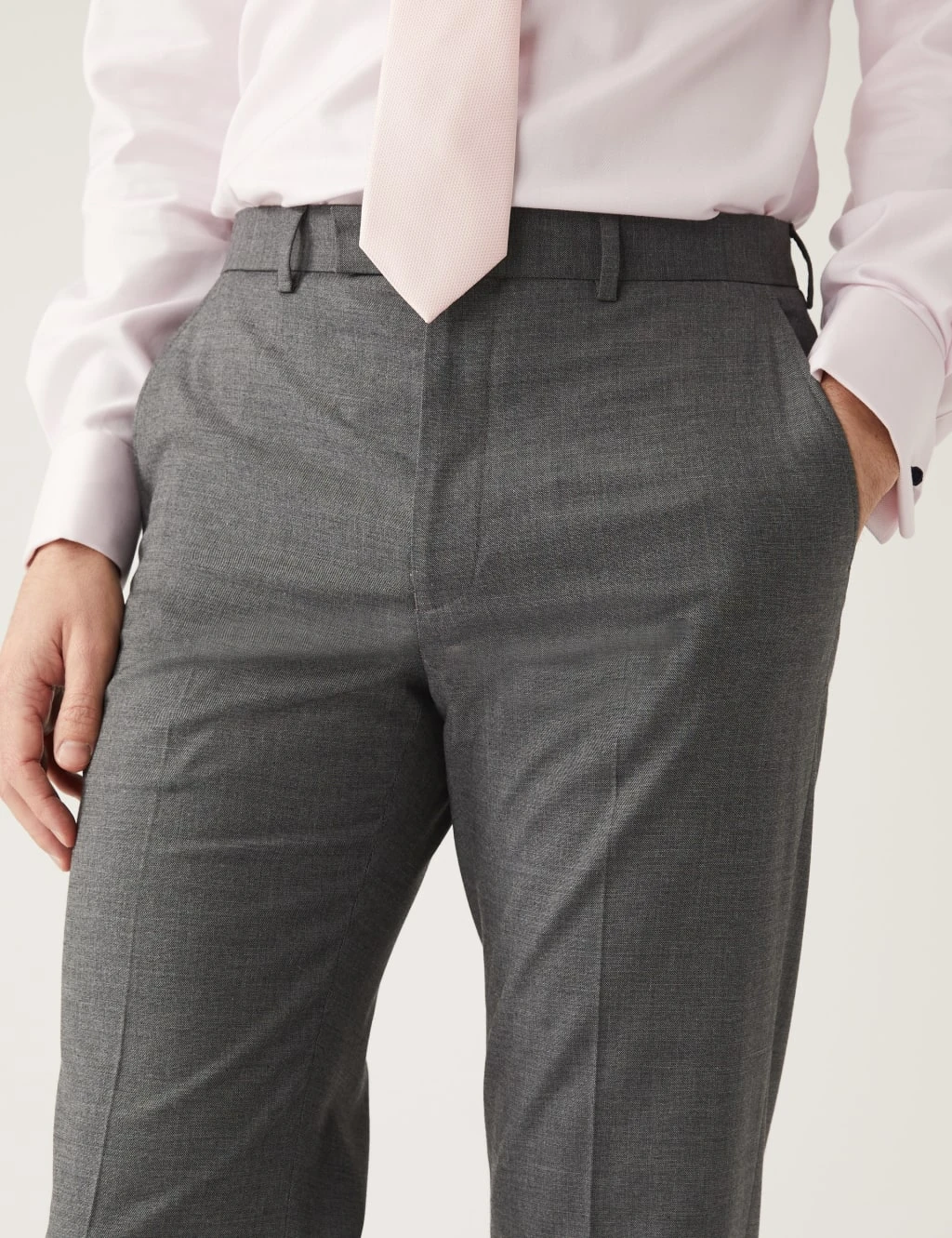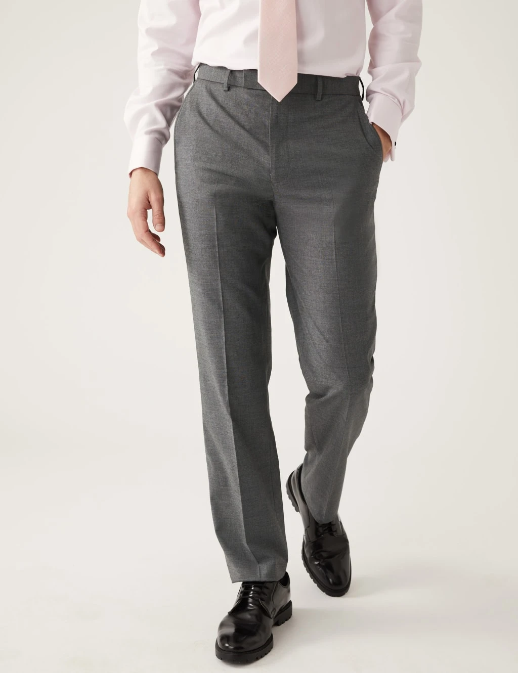 Update your formal wardrobe with these stylish sharkskin trousers. They’re made to a sleek slim fit in a modern flat front style with added stretch for comfort. A clever active waistband can expand up to one whole size for extra flexibility. Made with recycled polyester. M&S Collection: easy-to-wear wardrobe staples that combine classic and contemporary styles.