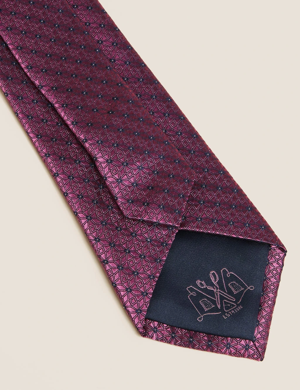Inject some colour into your occasionwear with this pure silk tie. Contemporary slim width, with a striking geometric print. M&S Collection: easy-to-wear wardrobe staples that combine classic and contemporary styles.