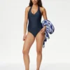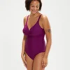 Add some sparkle to your poolside style with this eye-catching swimsuit. This flattering design is made with a plunge v-neck and non-padded cups to highlight your natural silhouette. Adjustable straps and added stretch in the material help to create a comfy fit. Chlorine-resistant fabric keeps your swimwear looking newer for longer, while our Sun Smart UPF50+ technology helps to protect against harmful UV rays.