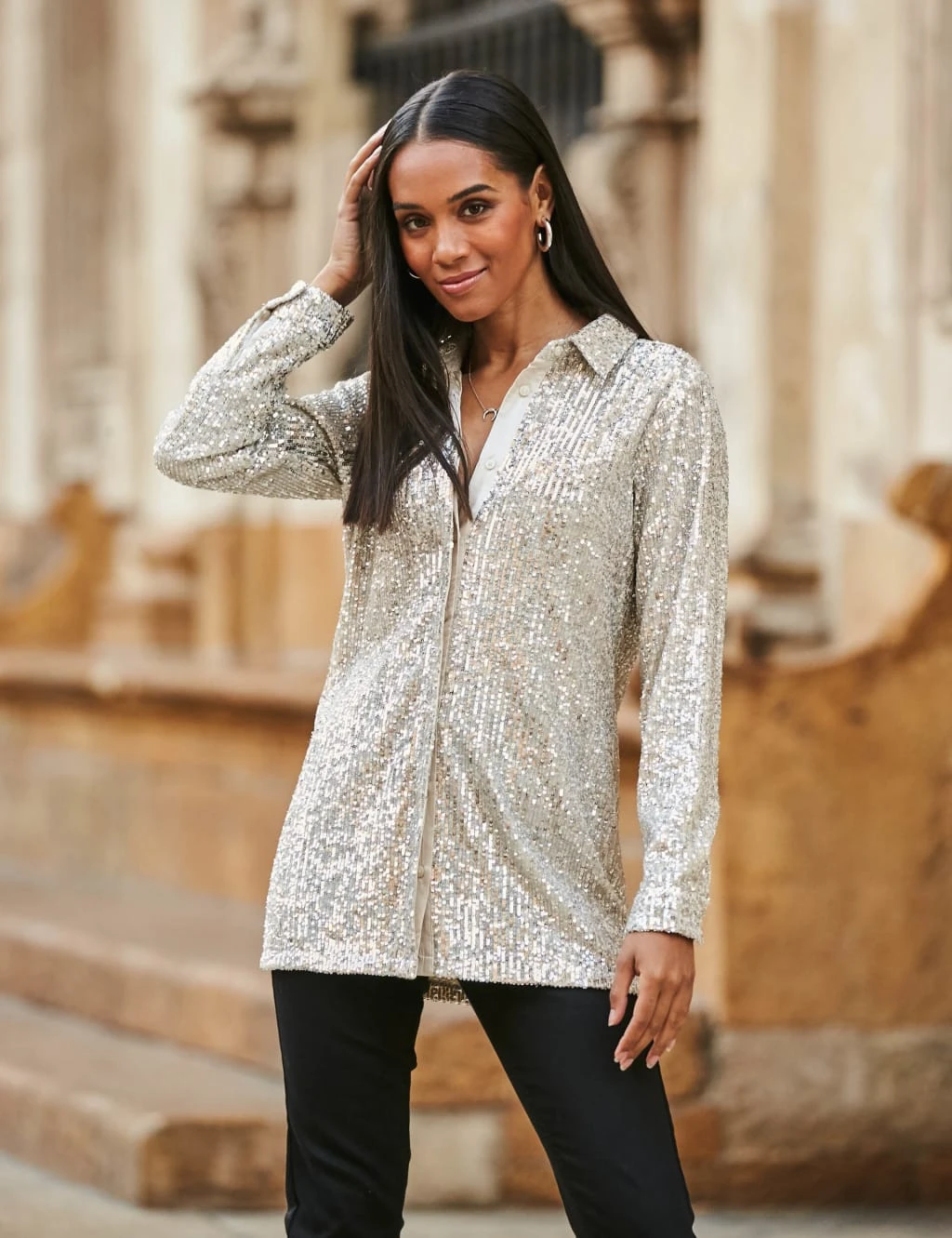 A glamorous take on a style staple, this shirt from Sosandar stands out with its sequin embellishments. It’s designed in a regular fit and features a classic collar and long sleeves along with a full lining for comfort. The button fastening down the front is concealed for a clean look.
