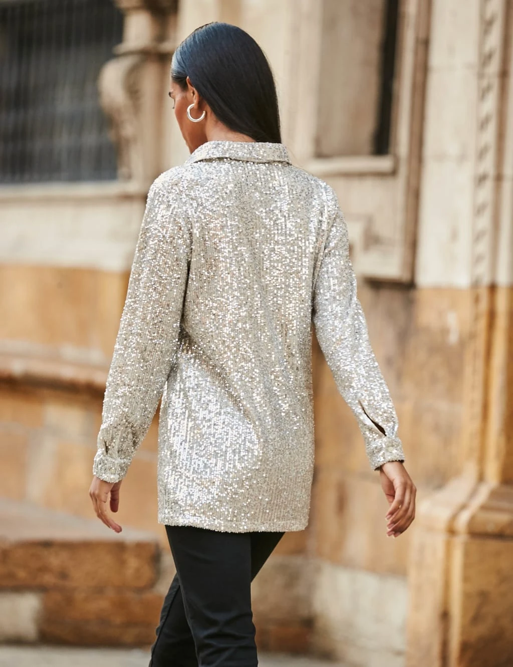 Sparkly Collared Long Sleeve Shirt