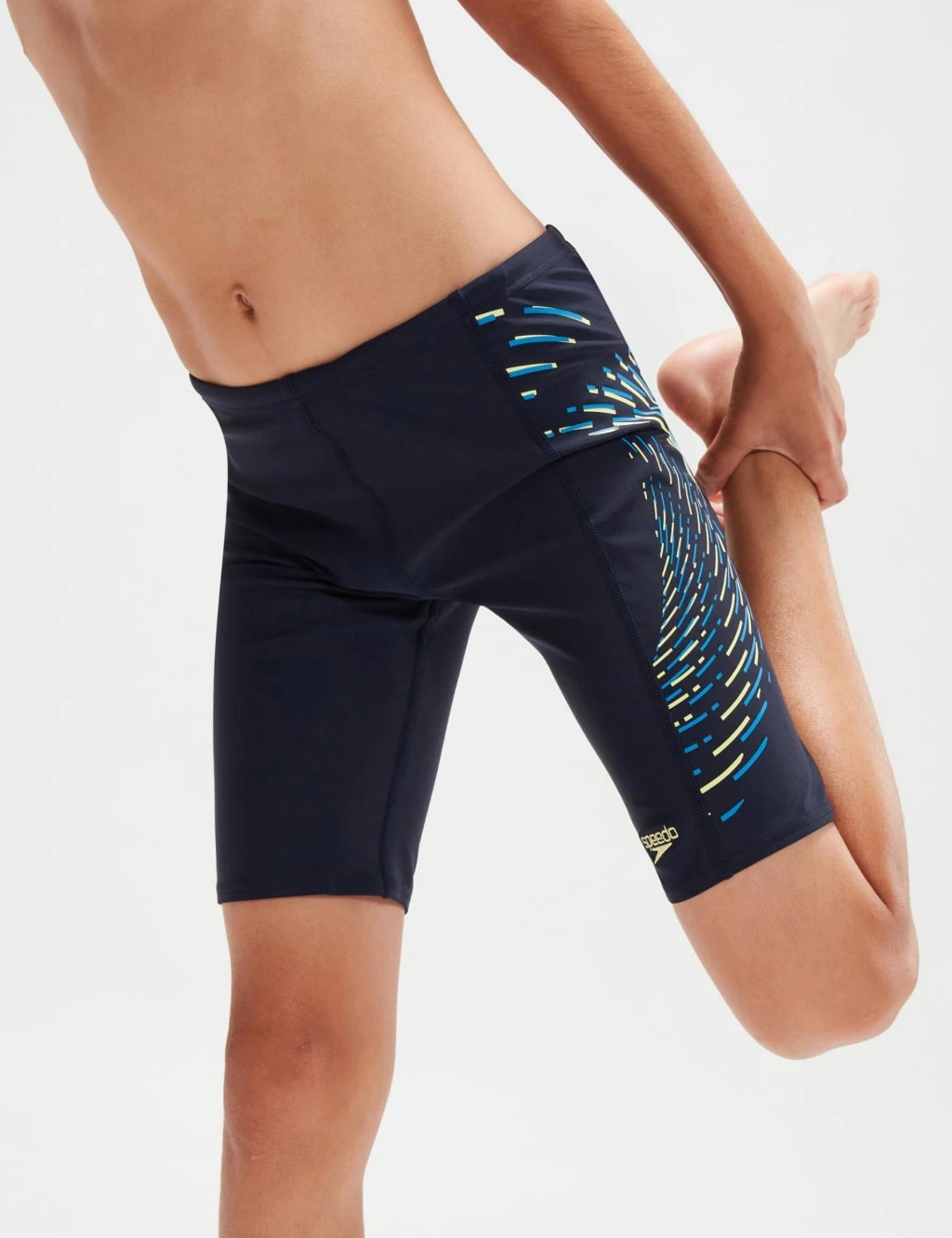 These kids’ Speedo swim shorts have a bold, sporty look with a graphic print on one leg. They’re cut to a regular fit from shape-retaining fabric that will stretch freely and keep its shape. The internal drawcord means the waist can be adjusted for comfort. Made with CREORA® HighClo™, this pair has a high chlorine resistance and will fit like new for longer.