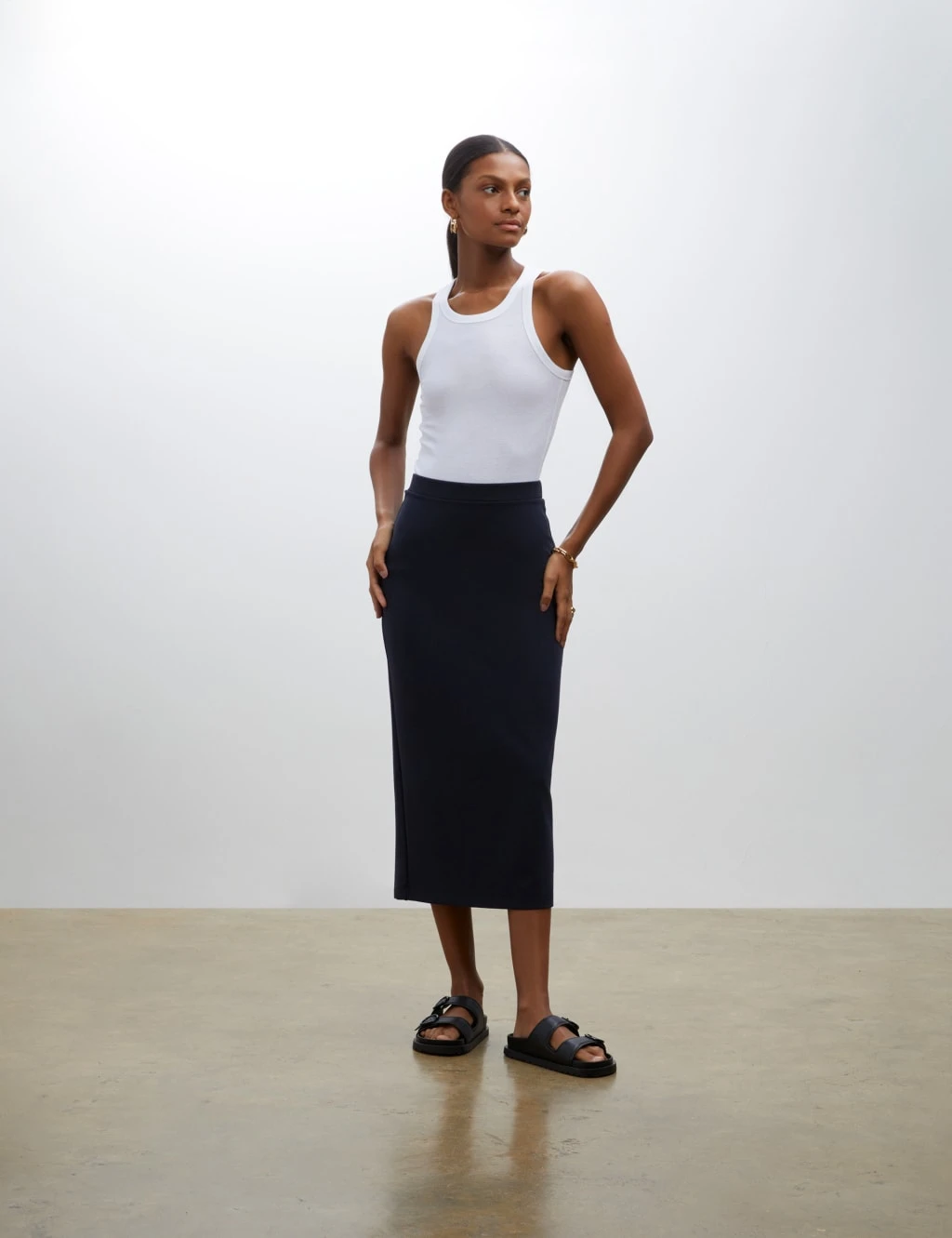 Upgrade your capsule wardrobe with this smart and versatile skirt from Finery London. It’s cut in a figure-defining pencil shape, with a comfy elasticated waistline. At the back, a split in the midi-length hemline ensures easy movement.