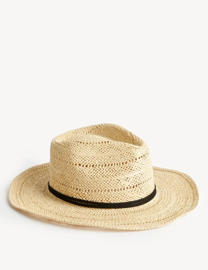 This packable straw hat can be worn in two different ways. Press a crease in the crown and turn up the brim for a classic cowboy look, or leave it flat if you prefer a traditional sun hat. A contrasting hatband adds extra detail. M&S Collection: easy-to-wear wardrobe staples that combine classic and contemporary styles.