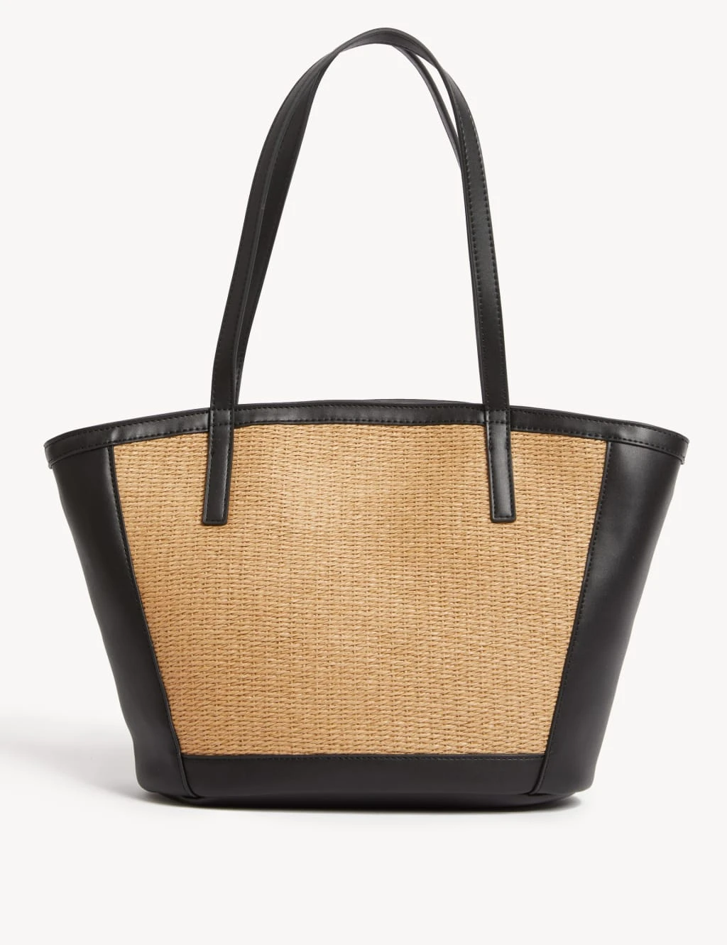 This straw tote bag is a fun choice for casual days. The central compartment has internal pockets and a magnetic popper fastening. On the outside, an extra slip pocket makes a handy spot for items such as access passes.