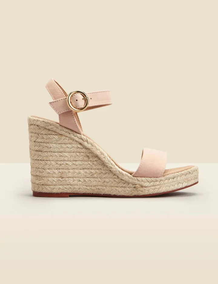 Add a classic to your summer shoe collection with these suede espadrilles by Sosandar. They feature a high wedge heel crafted from traditional raffia, plus a contrasting smooth open-toe upper. The supportive ankle strap is finished with a round, gold-tone buckle for a final on-trend flourish.