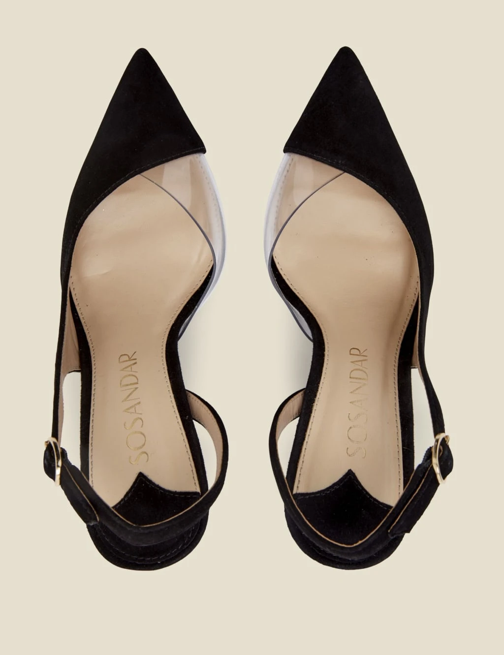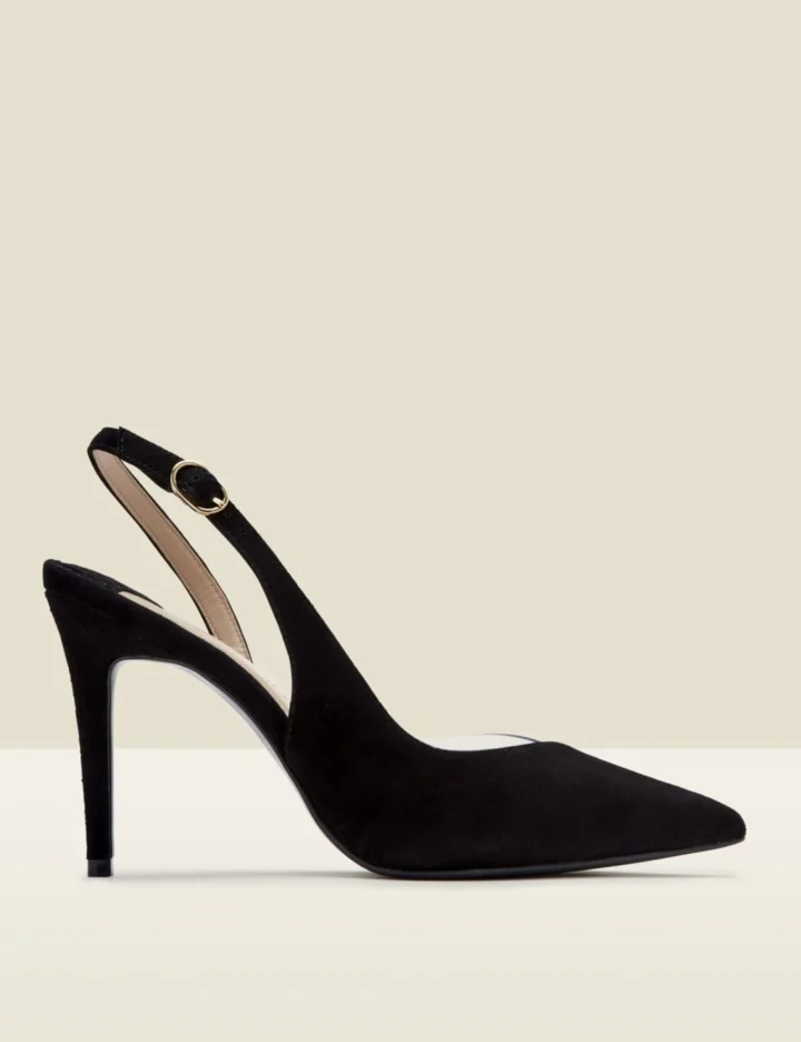These stylish suede court shoes from Sosandar are made with a perspex panel that creates a striking barely-there effect. They’re styled in a comfortable regular fit, with a high stiletto heel that’s ultra-flattering. A delicate slingback buckle strap completes the elegant look.