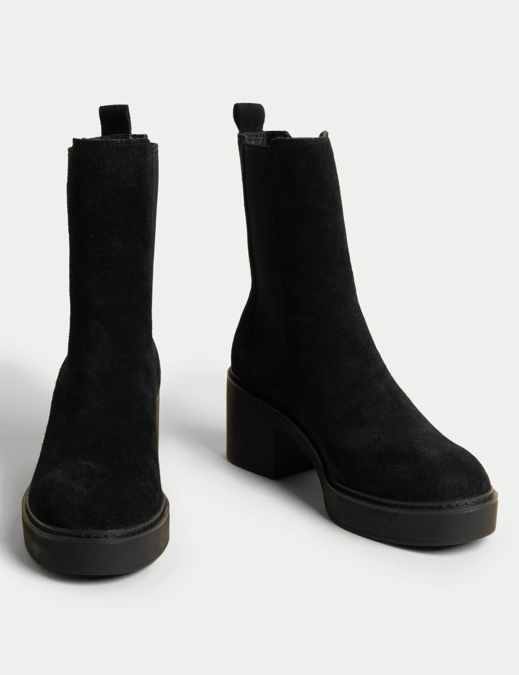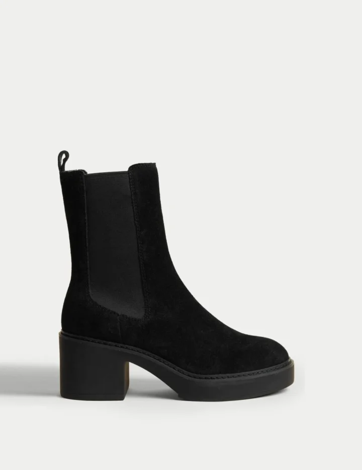 Suede Chelsea Chunky Block Heel Boots