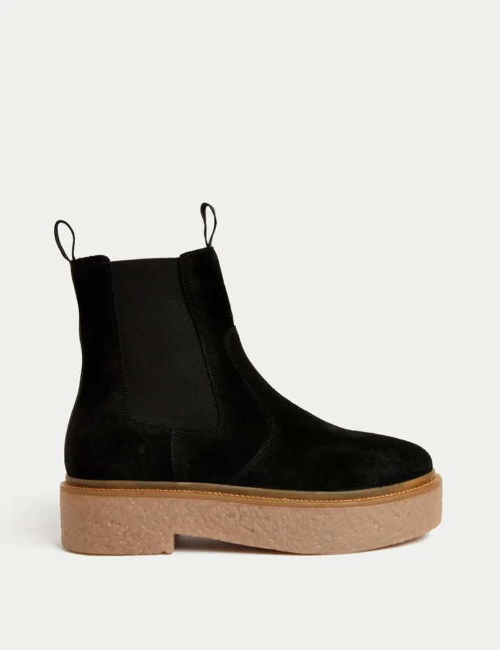 Slip on these soft suede Chelsea boots to give any outfit a stylish touch. Classic ankle-high design with a modern chunky sole which features a crepe effect on the outside. Insolia Flex® technology ensures your foot is correctly placed inside the shoe for all-day comfort. Antibacterial padding for a fresh feel. Water-repellent finish helps stops stains from forming and makes them easier to remove.