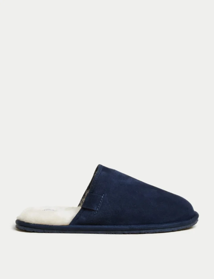 Slip your feet into these suede slippers from our Autograph range to relax after a long day. The mule-style design comes complete with a soft shearling lining. Freshfeet™ technology helps to combat odour, while our Thermowarmth™ technology keeps you cosy. Autograph branding provides a premium finish. Made with responsibly sourced leather.