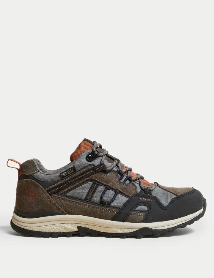 Tackle tough terrain in comfort with these sturdy walking shoes. Regular fit, with a secure lace-up front. Panels of suede and ripstop fabric make them highly durable and waterproof. Freshfeet™ technology helps to minimise odours and bacteria, and Thermowarmth™ provides superior insulation to keep your feet warm in cold weather. M&S Collection: easy-to-wear wardrobe staples that combine classic and contemporary styles.