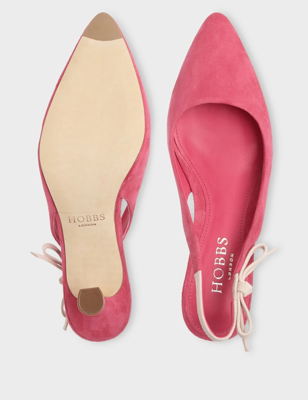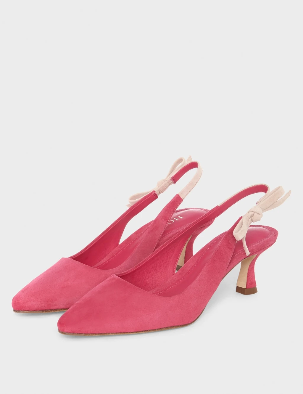 These suede slingbacks by Hobbs will lend an elegant finishing touch to your outfits. They come with a mid stiletto heel and a pointed front. There’s a dainty bow at the back and an elasticated strap for comfort.