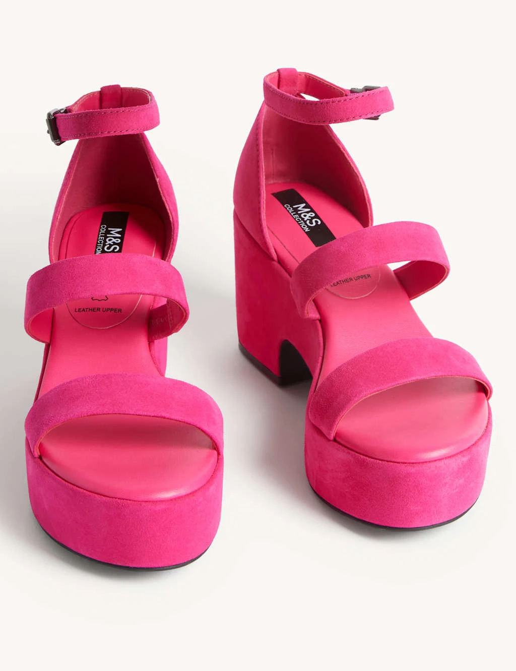 Embrace statement style with these bold platform sandals, made from soft suede. Designed with a stylish strappy silhouette and a buckle fastening for an adjustable fit. A special treatment makes the fabric more stain-resistant. Antibacterial padding helps to keep your footwear feeling fresh. M&S Collection: easy-to-wear wardrobe staples that combine classic and contemporary styles.