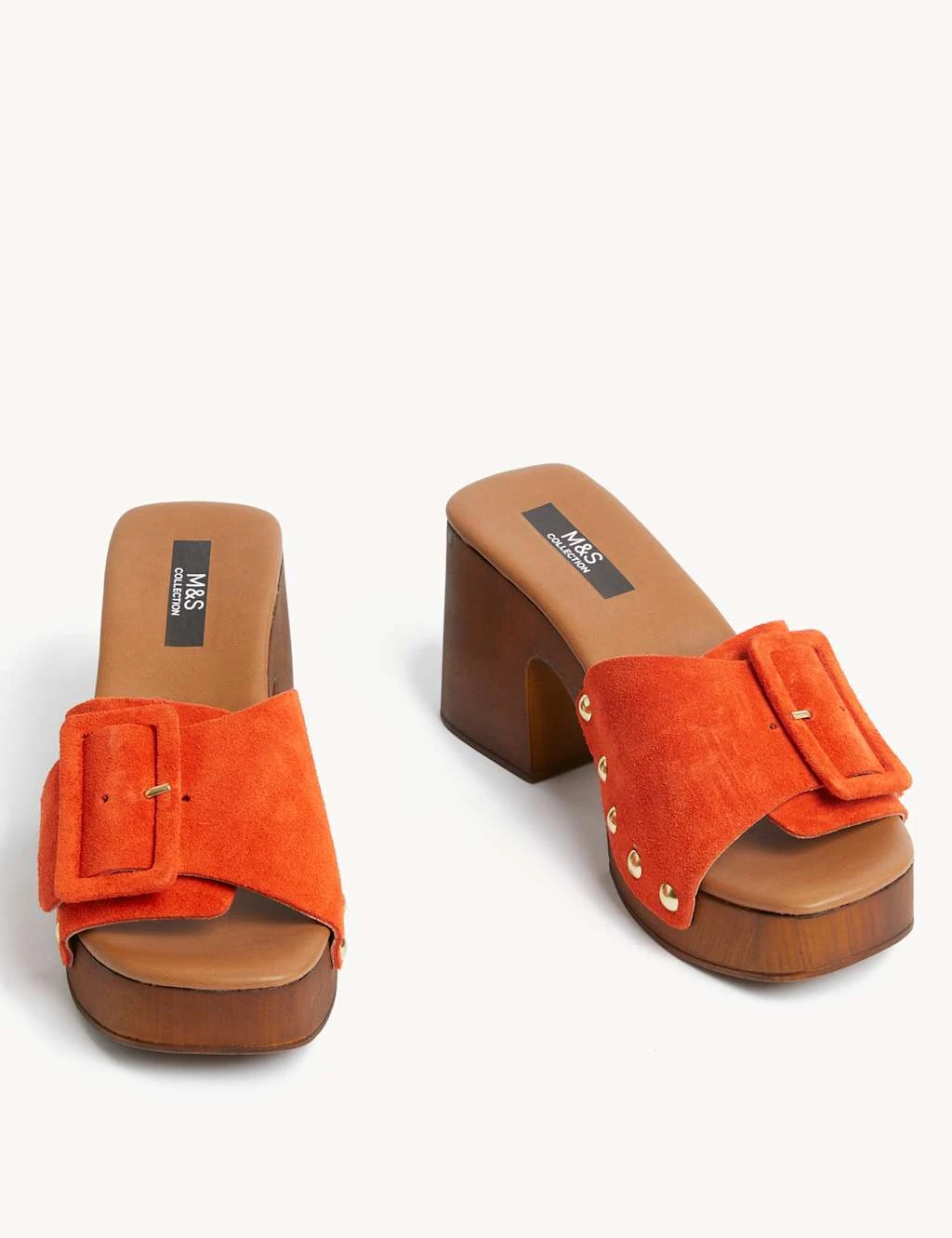 Slip on these suede mule clogs to complete your warm weather outfit. They’re designed with a large covered buckle over the toe and stud detailing at either side for a glamorous touch. A chunky mid-height heel offers a striking shape. Antibacterial padding helps to keep them feeling fresh.