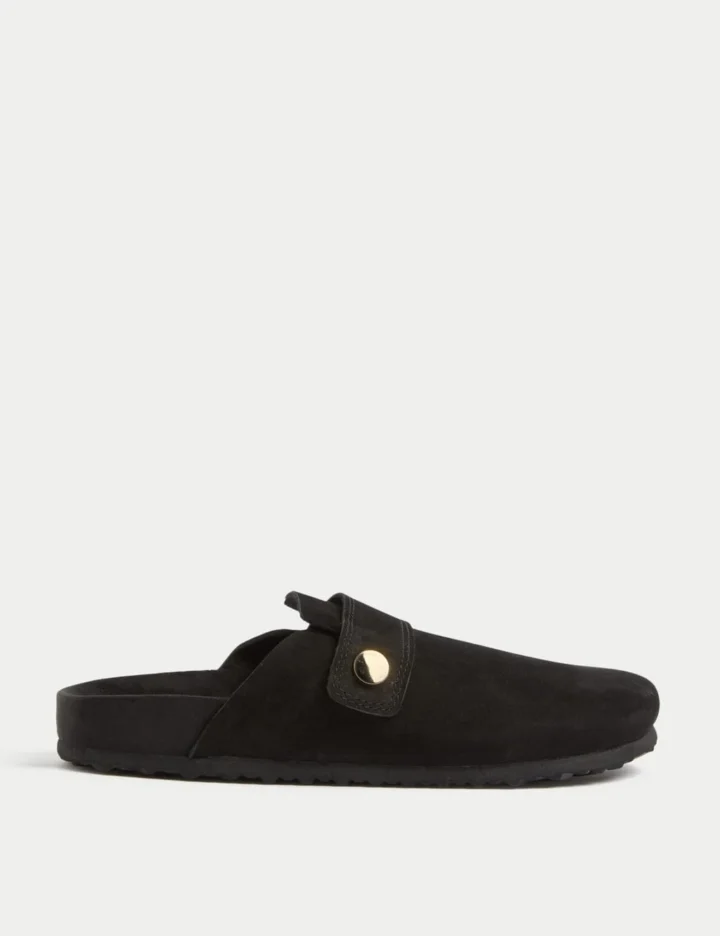 Slip on our suede clogs for a classic look. This pair features a comfortable footbed and Insolia Flex® technology to improve the natural rotational movement of the balls of your feet. We’ve added some extra little details, such as shiny studs and visible double-stitching on the band. Antibacterial padding keeps your footwear fresh, while our stain-resistant finish helps your shoes look newer for longer.