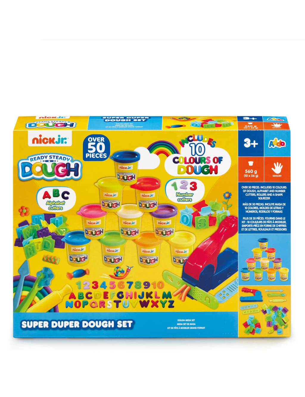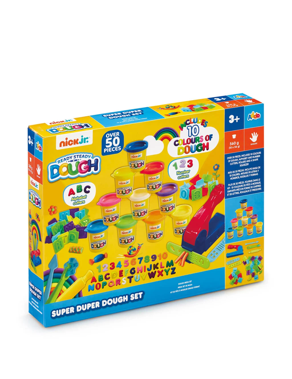 Kids can get creative while simultaneously learning with the Super Duper Dough Set from Nick Dough. It includes 10 pots of coloured dough, six dough sausages, alphabet and number cutters, a rolling pin, two shape sliders, a dough extruder and a rolling wheel cutter. Kids can roll, mould and shape the dough with the tools provided while learning about letters and numbers. A colour chart on the back will help them to blend any colours they need to create their masterpieces. Suitable for children over three years.