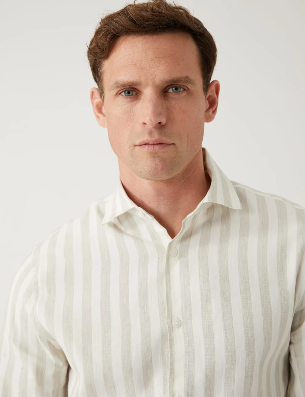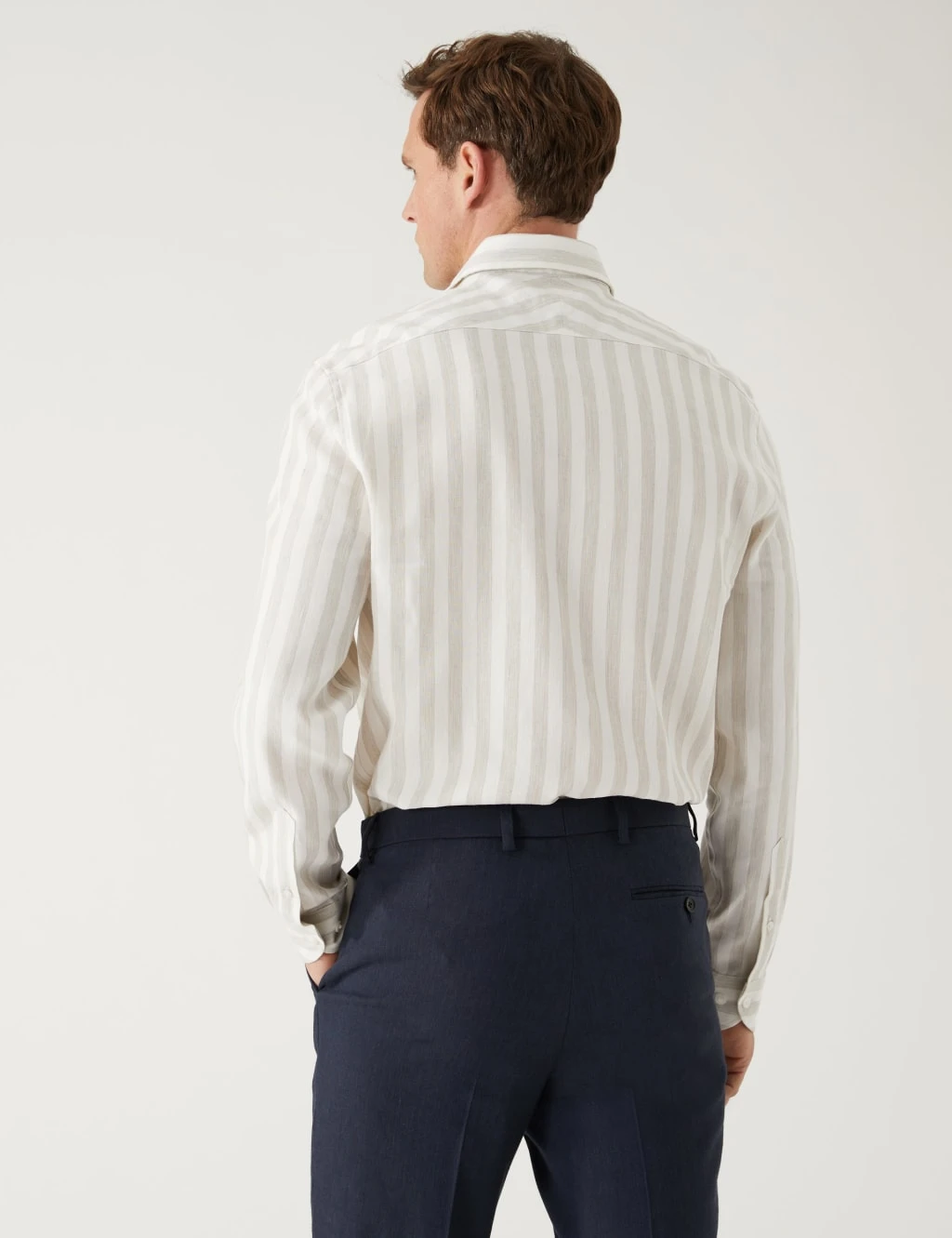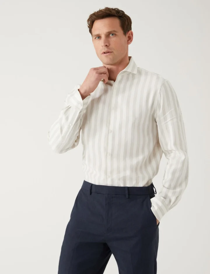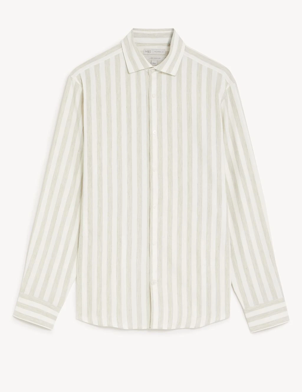 Smart style is effortless with this linen-rich shirt. Made to a sleek tailoredf fit from Italian Linen Miracle™ fabric, which gives you the crisp feel and breathability of linen without the creasing. Perfect for weddings and other formal events.