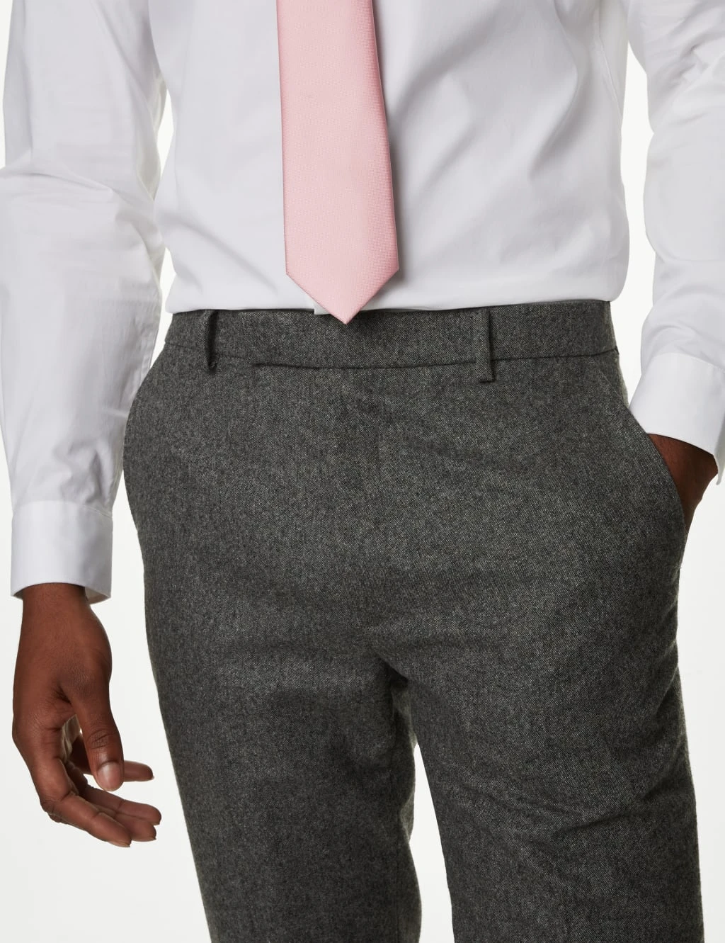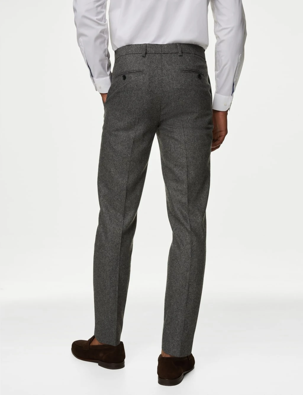 Create a traditional yet sharp look with these wool-rich Donegal tweed trousers. The tailored design has a single pleat through the leg for a timeless shape. Bound edges and a partial lining provide extra comfort to the trousers, which come complete with classic double jetted pockets.
