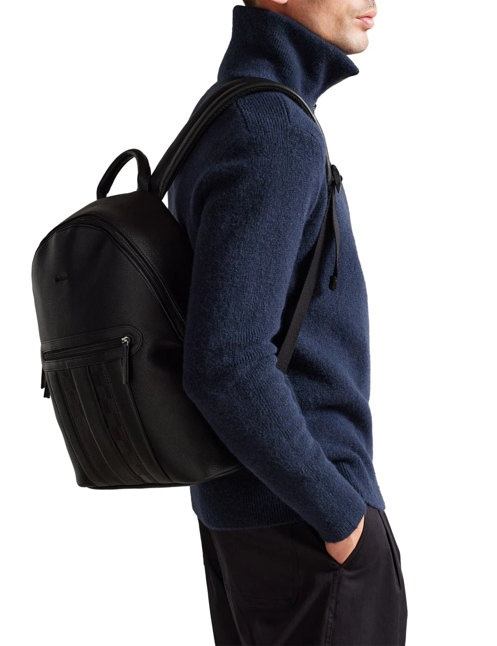 When it’s time to head out, just grab this Ted Baker backpack. It’s crafted with subtle panelling beneath the front zip pocket for a textured effect. You’ll find a handy laptop compartment inside, as well as adjustable straps on the back for comfy all-day wear. This piece is fastened with a sturdy zip to keep the contents secure.