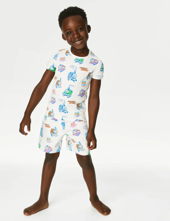 With a repeat print featuring their favourite locos, our cotton-rich pyjamas are perfect for Thomas & Friends™ fans. Two-piece skinny-fit set, including a short-sleeved t-shirt and shorts with a comfy elasticated waist. Added stretch makes them extra flexible.
