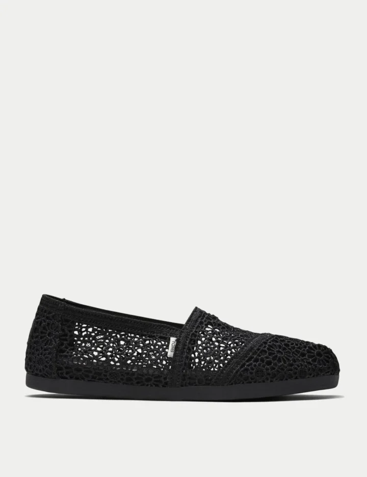 These TOMS espadrilles are crafted from embroidered openwork canvas for a light, feminine look. They’re made in an easy slip-on style. Grippy soles ensure good stability on uneven or damp surfaces, while stitched labels on the back add a branded finish.