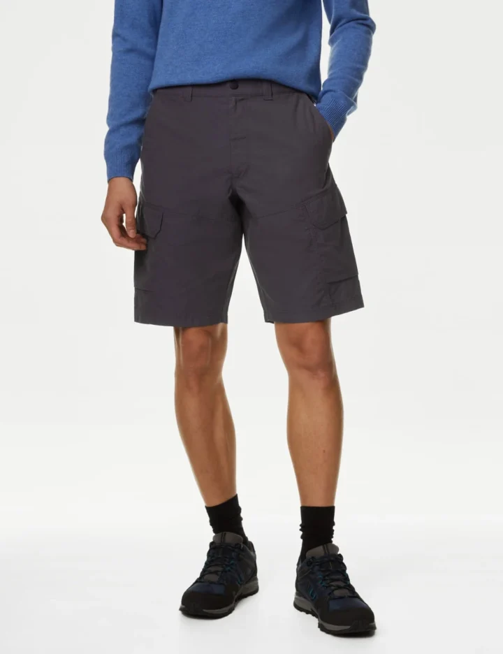 These cotton-rich cargo shorts make the ideal companion for an active lifestyle. Comfy regular fit, with an active waistband that moves with you. The large, secure zipped pockets have room for your essentials, while the tough ripstop fabric is ideal for exploring the outdoors. A water-resistant Stormwear™ finish stands up to the British weather. M&S Collection: easy-to-wear wardrobe staples that combine classic and contemporary styles.
