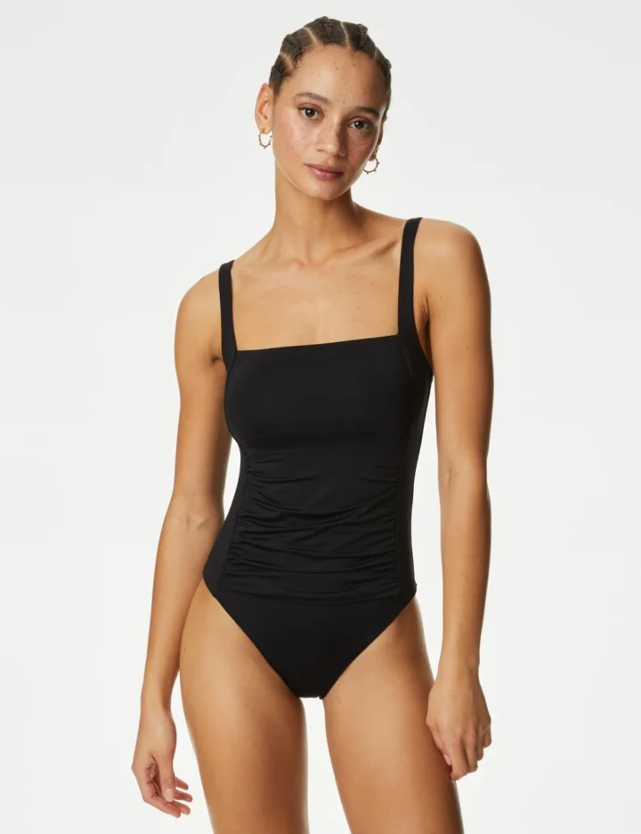 Hit the poolside in style in this square neck swimsuit. Designed in a regular fit with added stretch and adjustable straps for easy movement. Padded and lined for comfort. Magic 360 Tummy Control technology uses a layer of power mesh to sculpt your figure, ensuring you look your best from every angle. Our Sun Smart material helps to protect against harmful UV rays. M&S Collection: versatile styles in modern shapes with unique and playful details.
