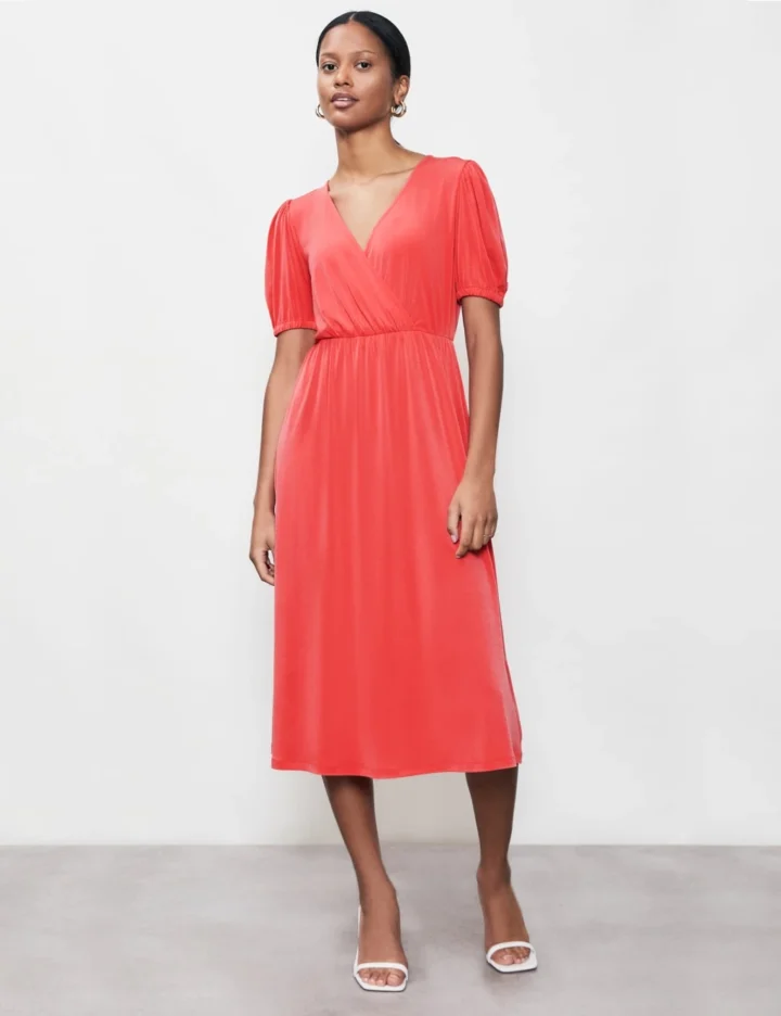 With its midi-length hem and short puff sleeves, this waisted dress from Finery London is a stylish choice for any occasion. It’s designed in a comfortable regular fit, with an elegant mock wrap v-neckline. Gathering at the shoulders and waist creates a flattering draped finish.