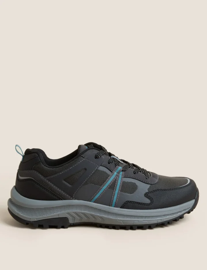 These rugged walking shoes are the ideal companion for exploring the great outdoors. The lace-up design has a shower-resistant finish to help keep you dry and a padded collar for comfortable support. Plus, our Freshfeet™ technology fights the bacteria that can cause odours.