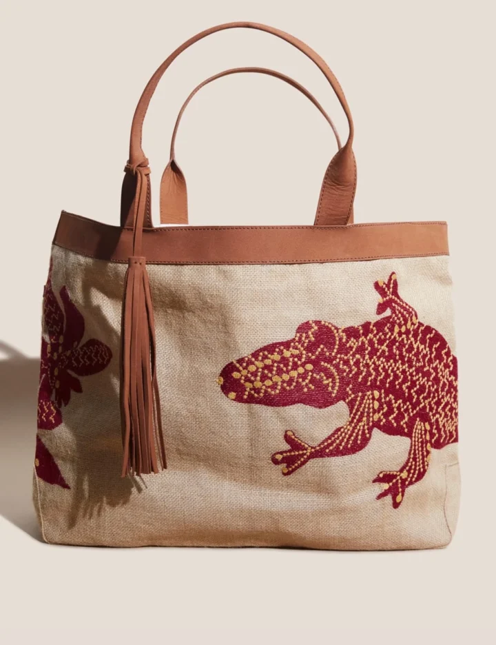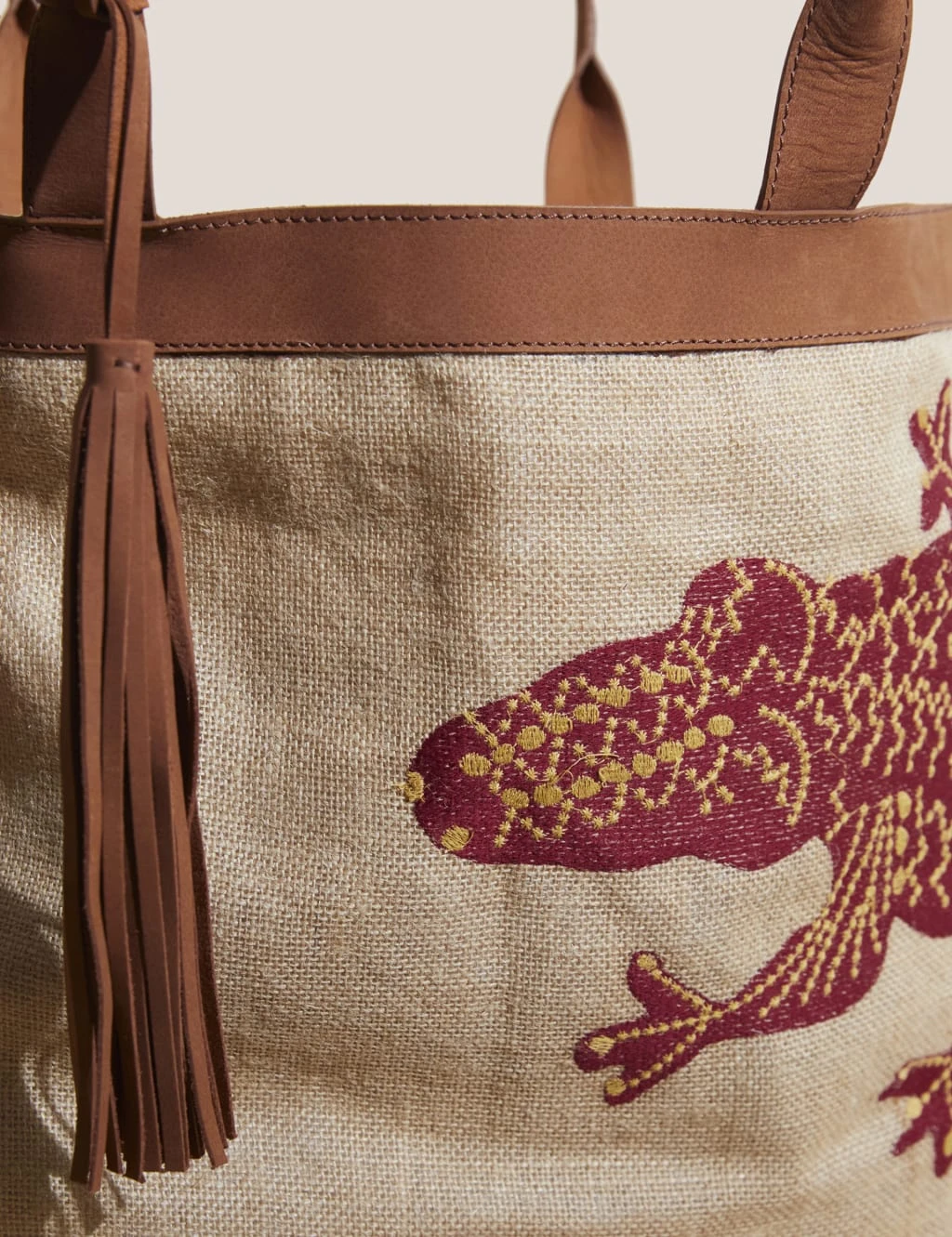Transport your daily essentials in this eye-catching canvas tote bag from White Stuff. It features an inner cotton lining secured with a drawstring fastening to protect your belongings. The leather trim and handles create a smart contrast and are highlighted by a playful tassel. A printed and embroidered alligator design adds a fun finish.