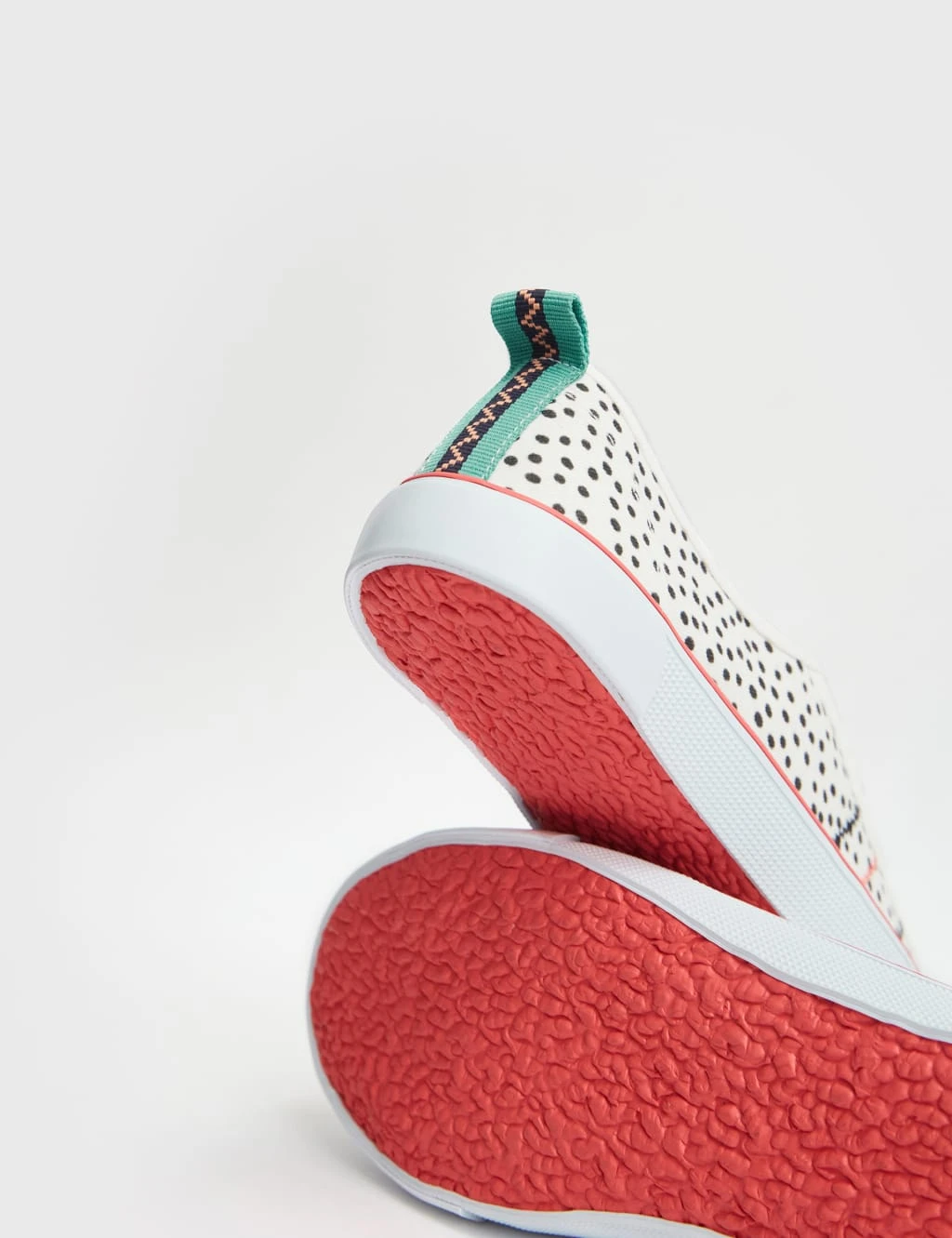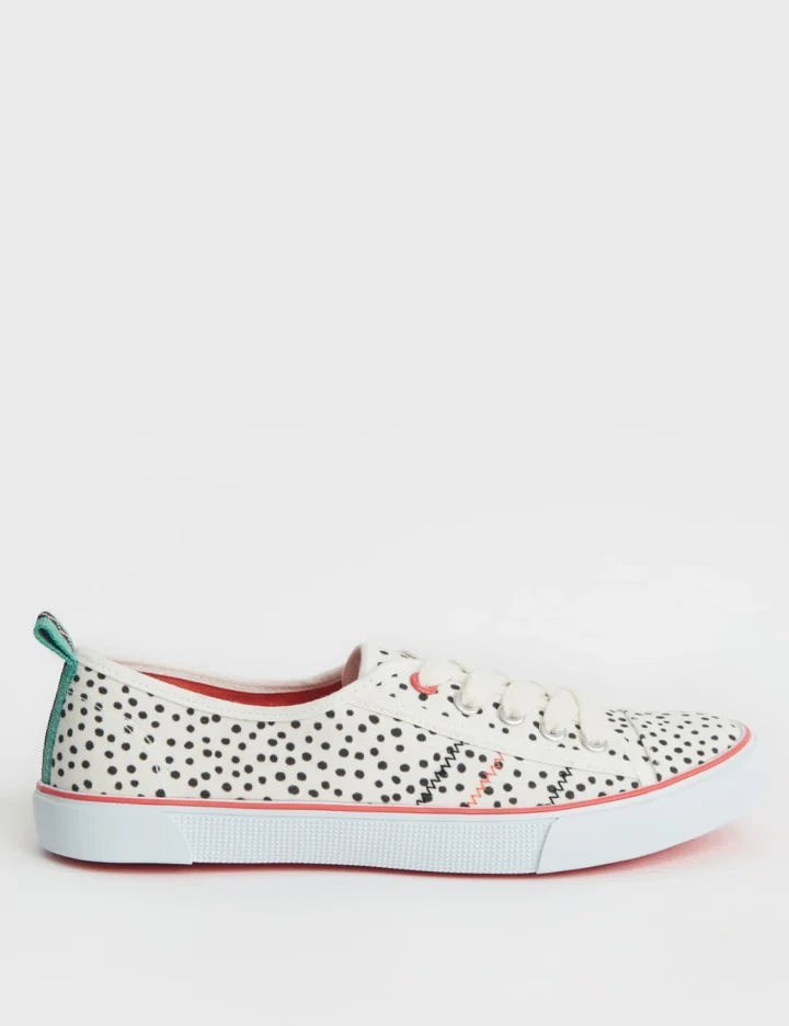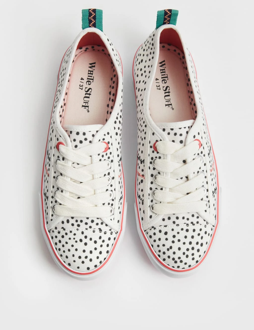 Elevate your casual looks with these pure cotton pumps from White Stuff. These effortless lace up are designed with decorative laces and a flat heel. The upper features a playful spot print and zig-zag stitching, while contrast detailing adds an extra pop of colour.