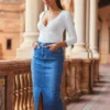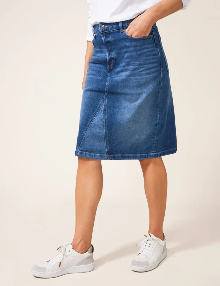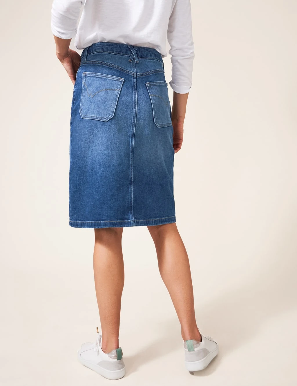 This denim skirt from White Stuff is the ultimate off-duty staple. This five-pocket design is made in a regular fit and sits at a comfortable knee length. It features belt loops and fastens with button.