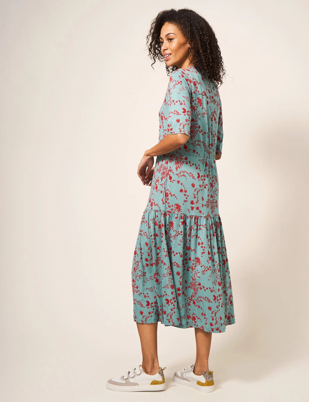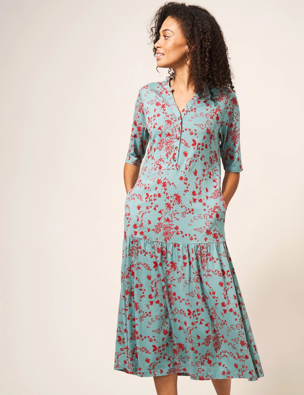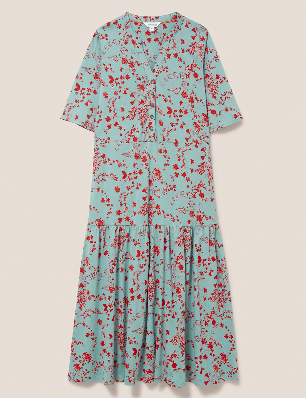 WHITE STUFF Jersey Floral V-Neck Midi Tiered Dress