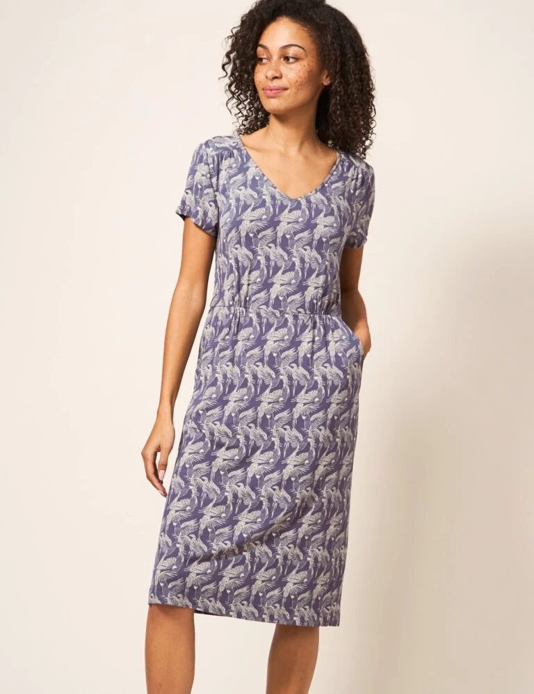 Update your casual wardrobe with this jersey dress from White Stuff, featuring a repeated bird print. This waisted design is cut in an easy regular fit, with breezy short sleeves and a v-neckline. A versatile knee-length hemline and handy side pockets create a practical feel.