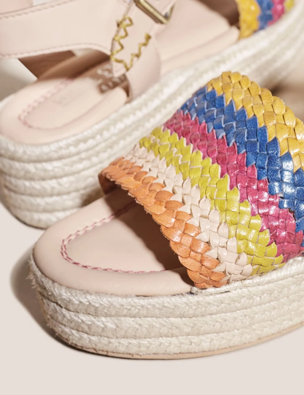 With their mid-height flatform sole, these White Stuff espadrilles will give your smart-casual looks a lift. The leather, buckle-fastening ankle strap contrasts with a plaited, colourful weave at the front to form the modern silhouette. Plus, they’re lined with leather for extra comfort.