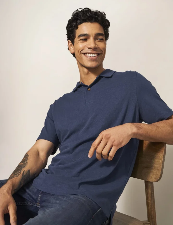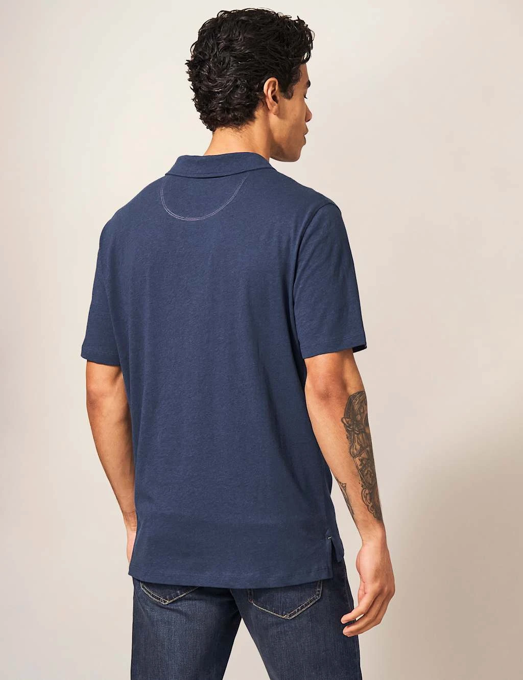 WHITE STUFF Linen Blend Revere Polo Shirt