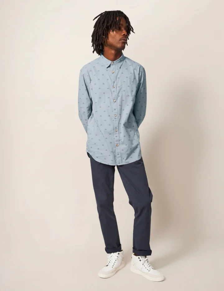 With its all-over bicycle print, this pure cotton shirt from White Stuff adds a playful touch to smarter outfits. The button-through style is cut in an easy regular fit with a classic collared neckline. A box pleat at the back and a neat chest pocket complete the tailored look.