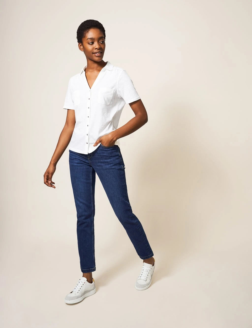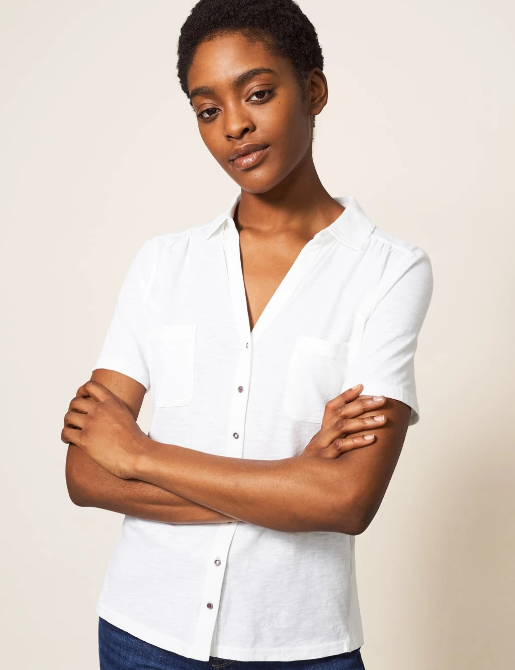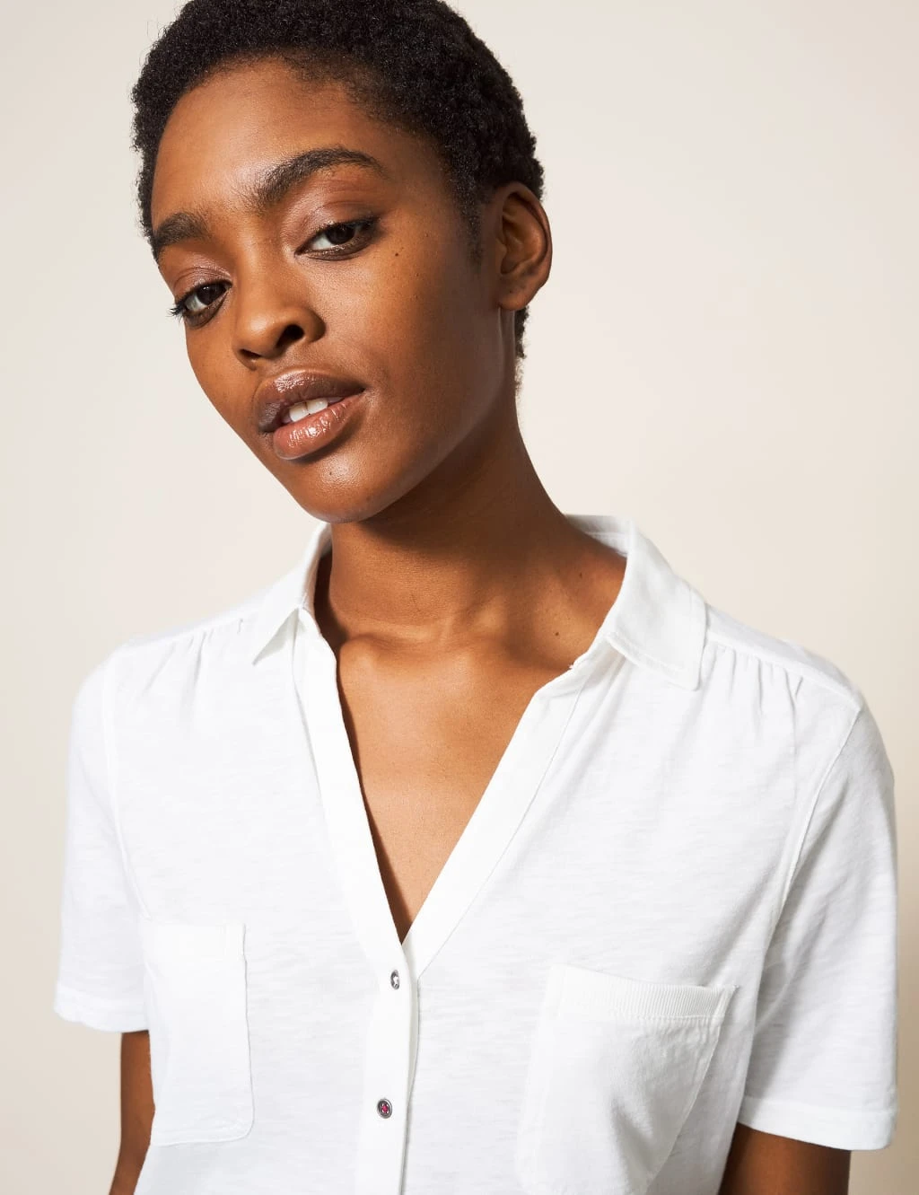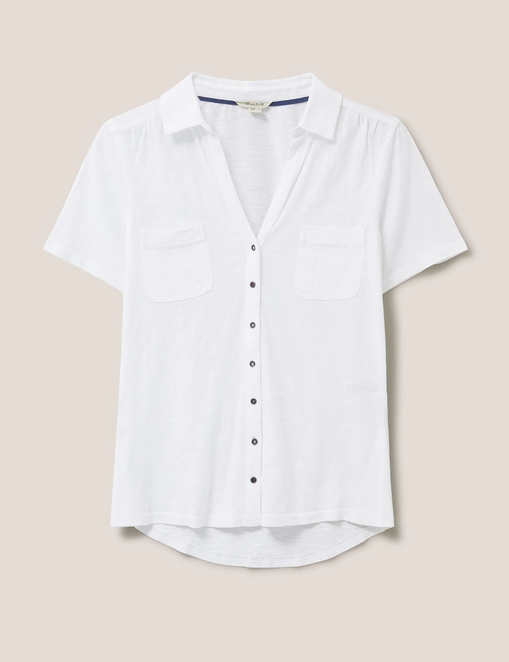 This dress-up, dress-down cotton jersey shirt from White Stuff will make a versatile addition to any wardrobe. It’s cut to a comfortable regular fit, with a deep v-neck that dips to a button front. Two chest pockets complete the piece.