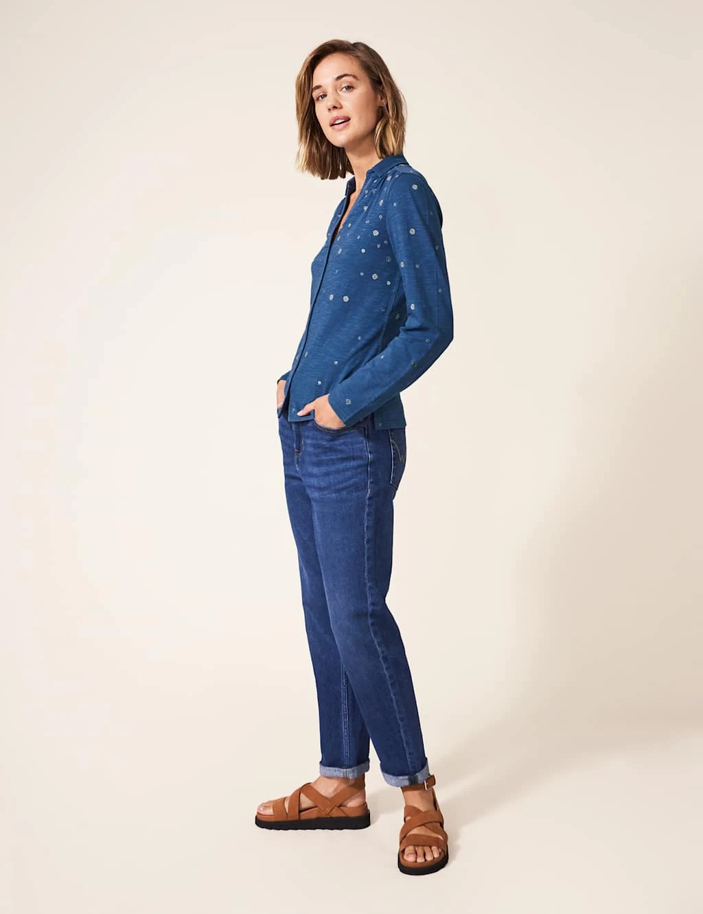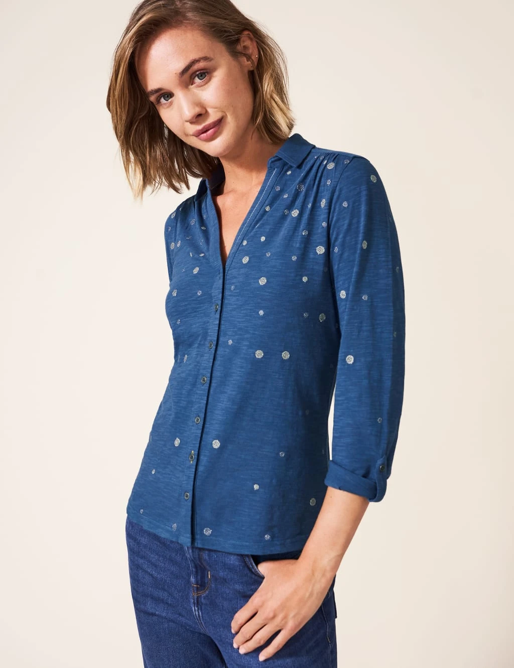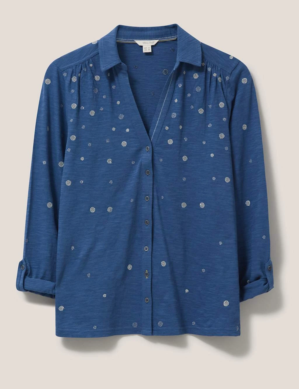 This pure cotton shirt from White Stuff is embroidered with a sprinkling of spots for a playful feel. It’s cut in a figure-defining slim fit, with a soft collar at the flattering v-neckline. The long sleeves have roll-tab cuffs so you can wear your new shirt your way.