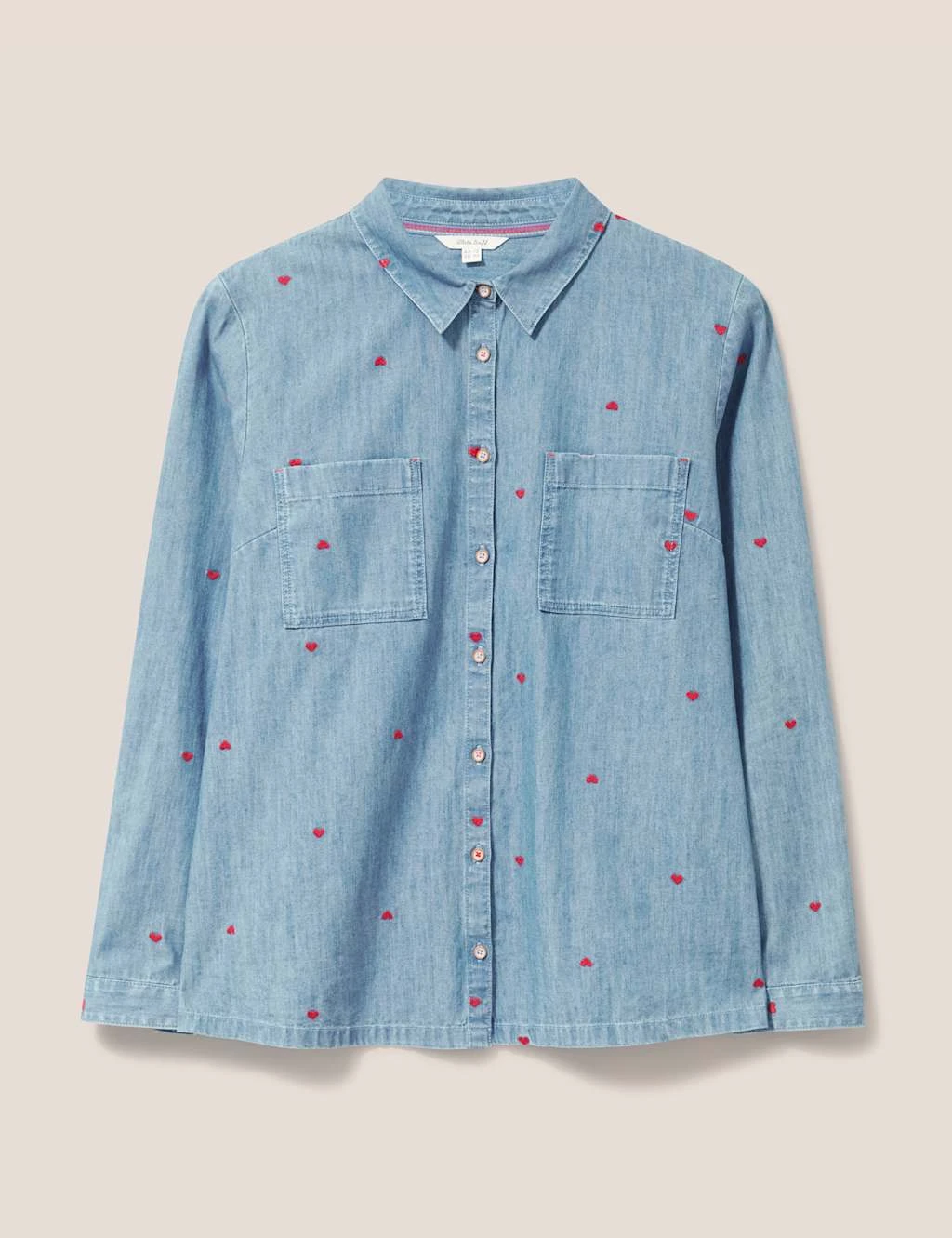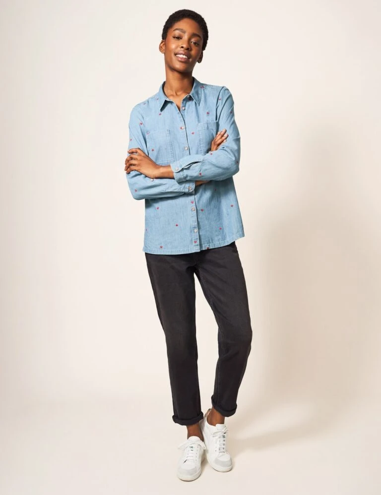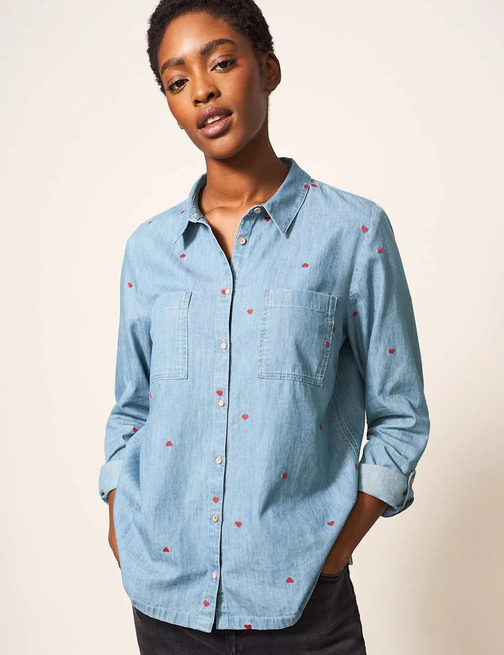Create a casual look you love with White Stuff’s heart-embroidered shirt, made from breathable pure cotton. Cut to a regular fit, it’s classically tailored with a smart collar neckline and a button-through front as well as dart shaping through the chest.