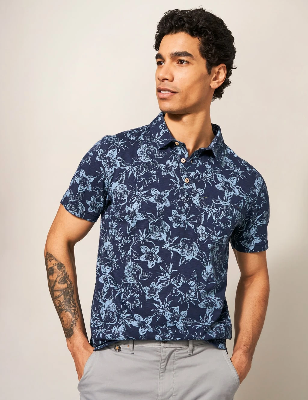 Bring a tropical-inspired vibe to casual ensembles with this floral polo shirt from White Stuff. It’s made in a comfy regular fit, with a classic collar and contrast buttons on the placket. The pure cotton fabric and short sleeves give this stylish piece a breezy feel.