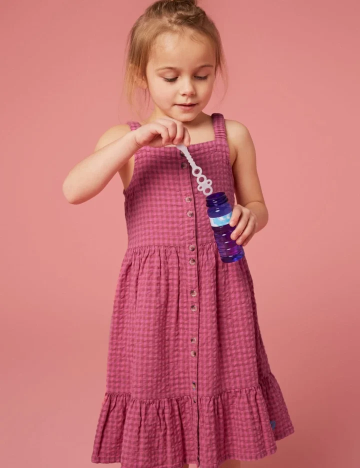 When summer calls, this pure cotton dress by White Stuff is ready to play. It’s cut in a comfy regular fit, with a tiered skirt for a fun effect. Lightweight gingham seersucker fabric and a strappy sleeveless cut offer an airy feel. It’s complete with a square neck and button fastenings through the front.