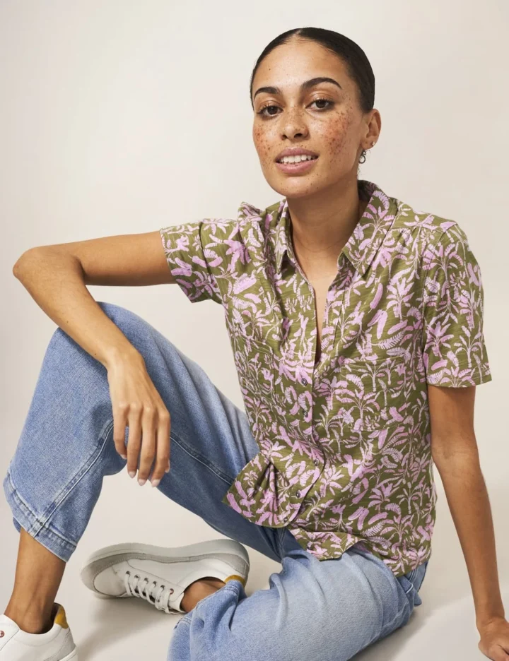 Soft tailoring meets a vibrant print with this pure cotton White Stuff shirt. The perfect piece to dress up or down, it has an easy regular fit with a neat button-down front. The open v-neckline and short sleeves lend smart-casual appeal.