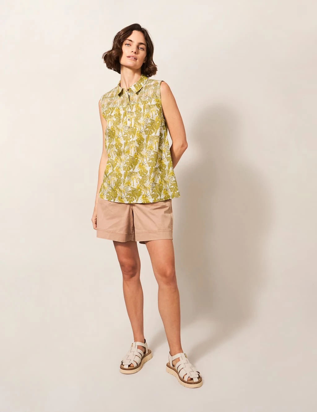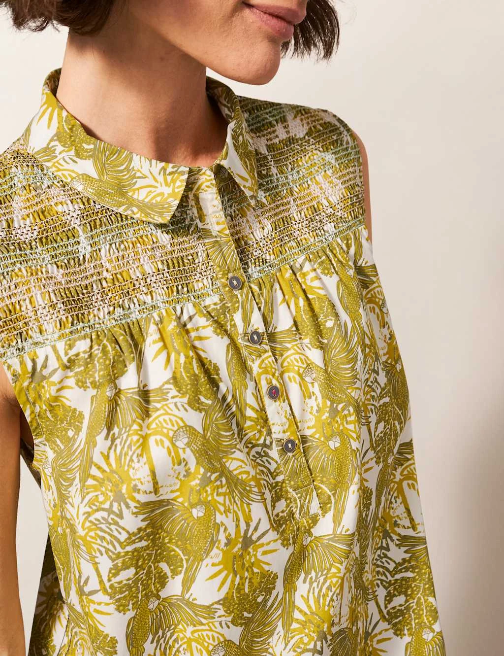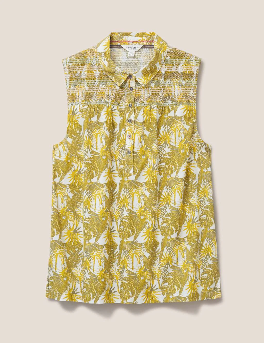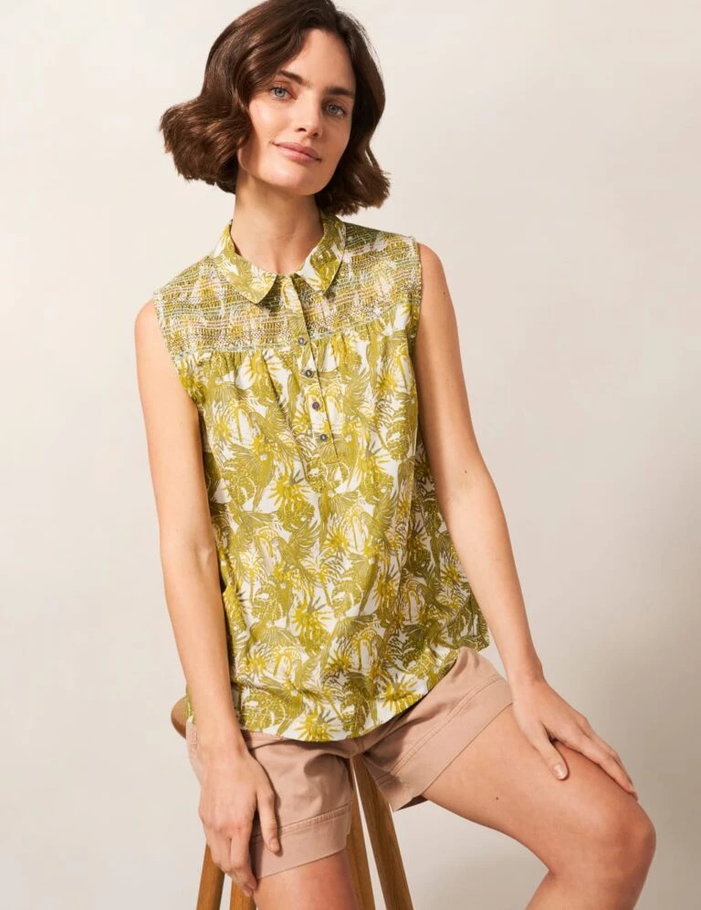 Bring a bright feel to those sunny days with this printed pure cotton shirt from White Stuff. This breezy sleeveless style is cut to a comfy regular fit and features flexible shirred detailing across the shoulders. A collared neck adds a smart finish.